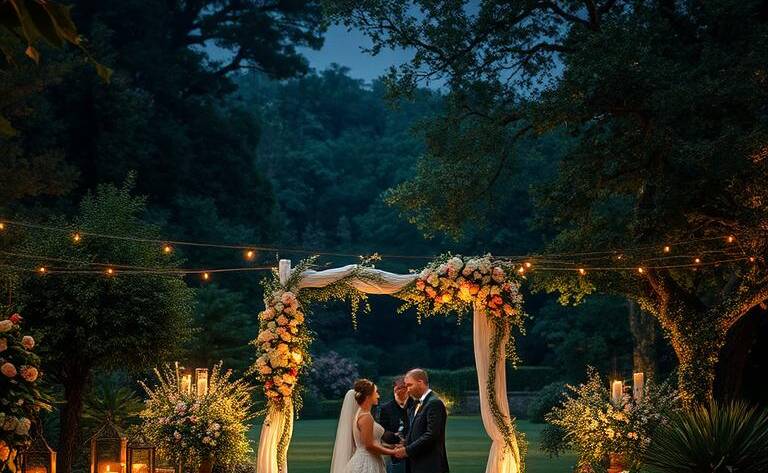 I remember my friend's outdoor wedding. It was lit up with twinkling lights and green everywhere. This elegant outdoor wedding idea is amazing. It makes you feel close to nature.…