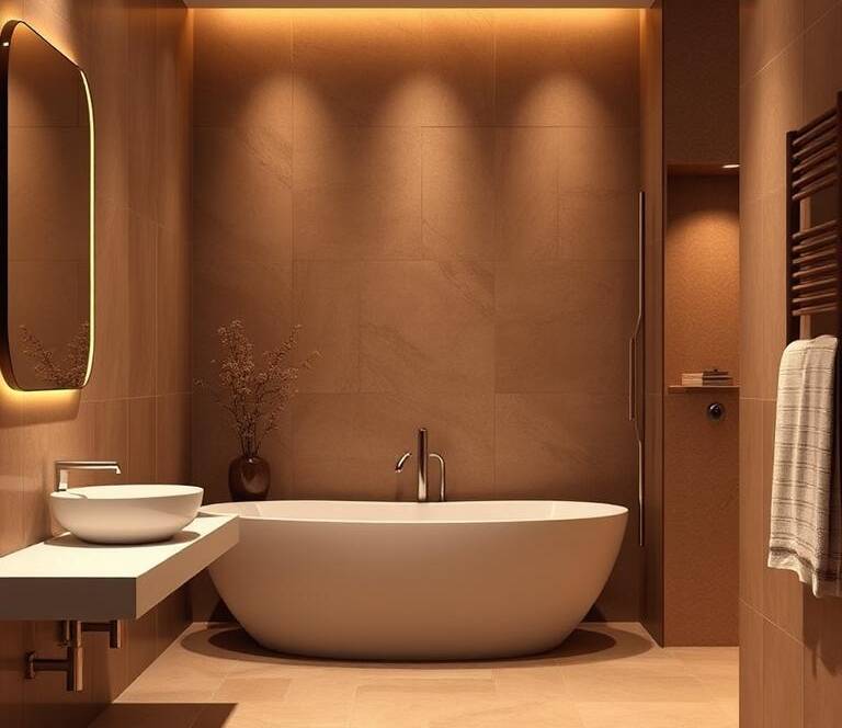 Neutral tones are a favorite for bathroom wall decor because they bring timeless elegance. Colors like white, beige, and gray make a space clean and calm. They are great for bathrooms. Mixing these colors with natural textures makes the space look even better.