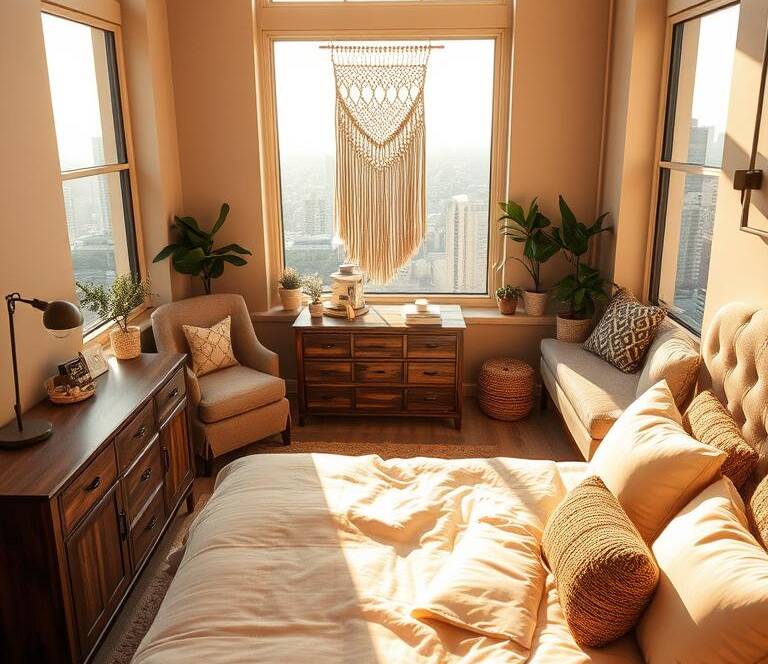 Being creative with storage can really help your bedroom stay organized. Use bins under your bed, hanging organizers, or stackable shelves. You can even turn old furniture into something new, like a bookshelf from an old ladder or a storage chest from an antique trunk.