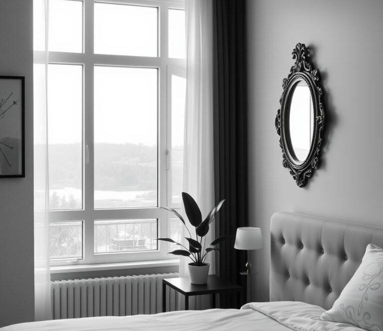 Curtains and drapes are more than just for covering windows. They’re a big part of your bedroom’s look. Pick curtains that match or go well with your bedding. Blackout curtains in green can make a big statement, while sheer black ones look sleek.