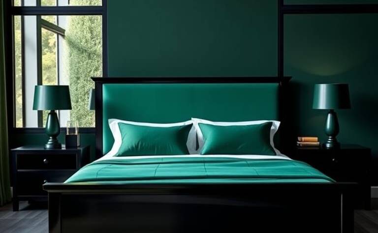 Thinking about my bedroom, I remember the magic of colors. A black and green bedroom feels like a forest inside. It's both elegant and cozy, mixing calmness with luxury.