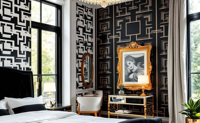Looking at design trends on Pinterest, I saw many stylish black white and gold bedroom decor ideas. This color…