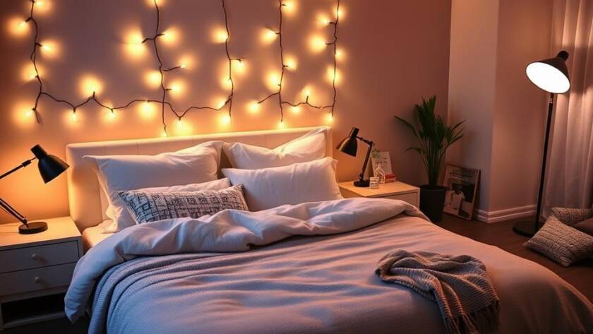 Lighting is key in making a room feel right. In small bedrooms, the right lights can make it seem bigger. This makes the room feel cozy and calm.