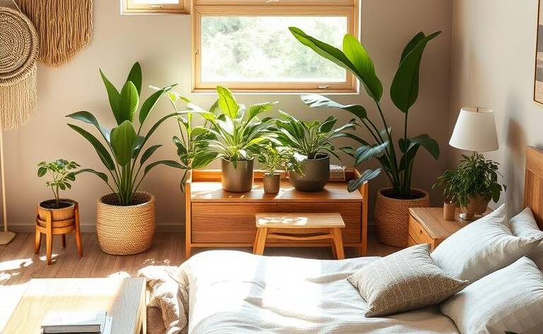 I've learned to mix contemporary design with the feel of nature. This mix is key to an earthy look. It brings peace from outside into your bedroom.