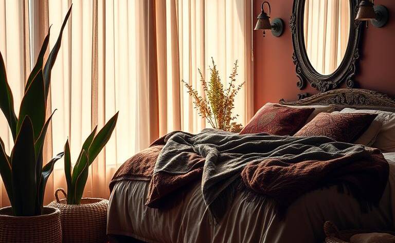 Thinking about my own bedroom, I see how moody boho elements change everything. Mixing bohemian style with darker colors makes a cozy spot. It's great for relaxing after a busy day.
