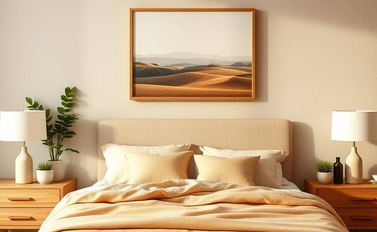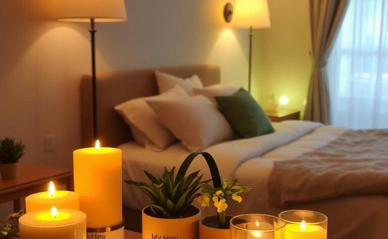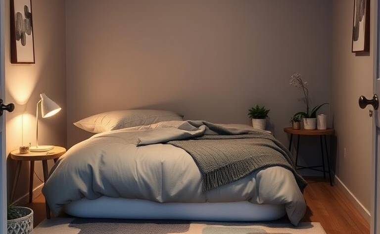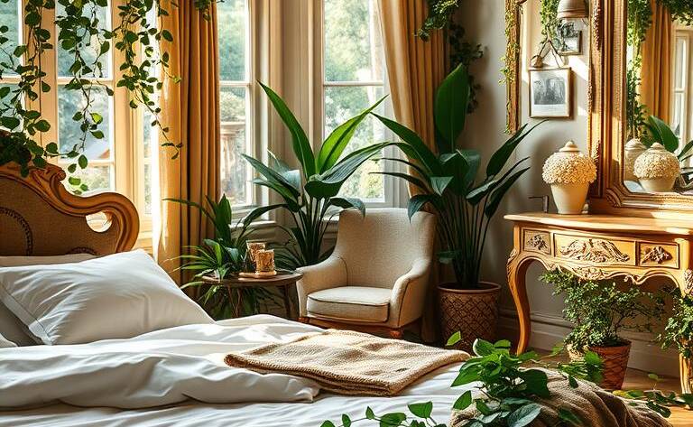 I think about making my bedroom peaceful. I learned adding natural things is key. A calm room helps us sleep well and feel fresh in the morning.