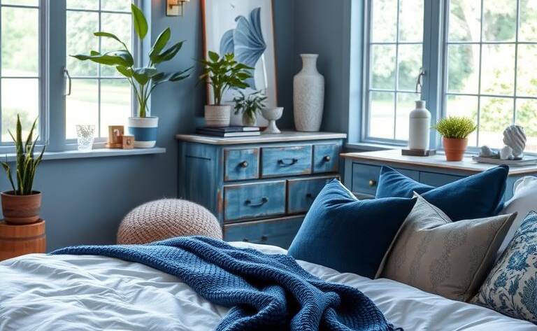 A calm bedroom is a place for rest and peace. I think about my own space and how important it is. The color blue brings feelings of calm and peace, perfect for a quiet spot.