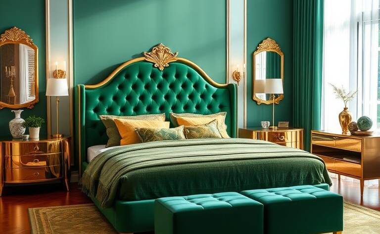 I love the rich look of emerald green and gold. It makes any room feel fancy and elegant.
