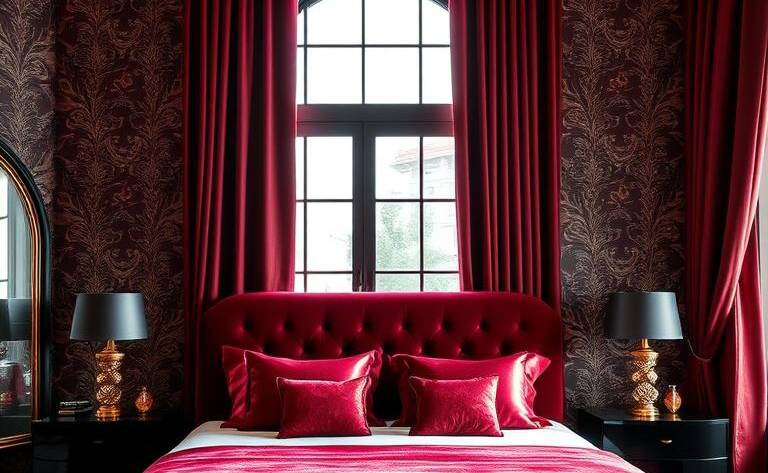Making a luxurious bedroom is a personal thing. Using deep reds and rich blacks can really change the room.