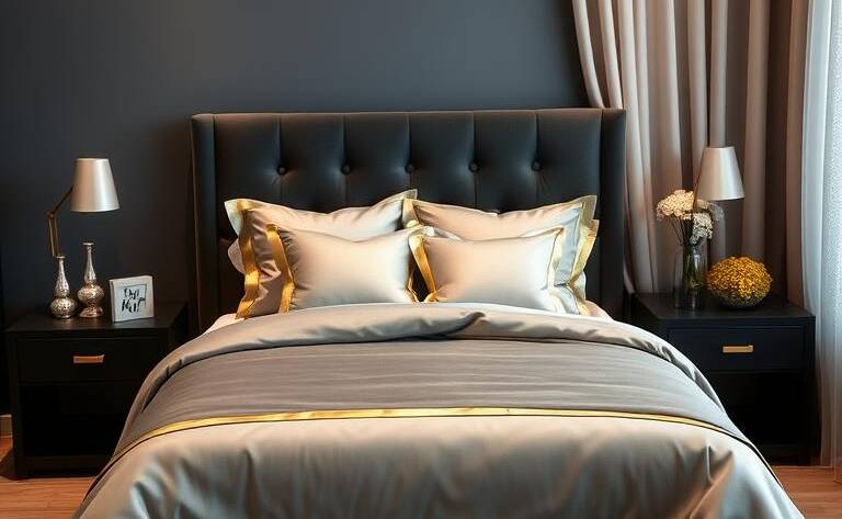 Creating a luxury bedroom is all about the right colors and design. For me, a calm and elegant space is essential. That's why grey and gold bedroom ideas are perfect – they mix beauty with warmth.