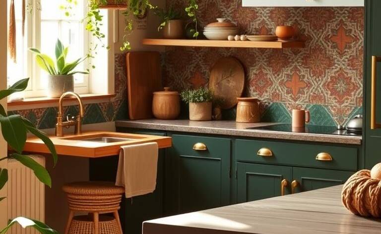 When I enter my dream kitchen, I feel a warm, cozy vibe. It shows off my style with bohemian kitchen decor. Vintage and global touches come together beautifully here.