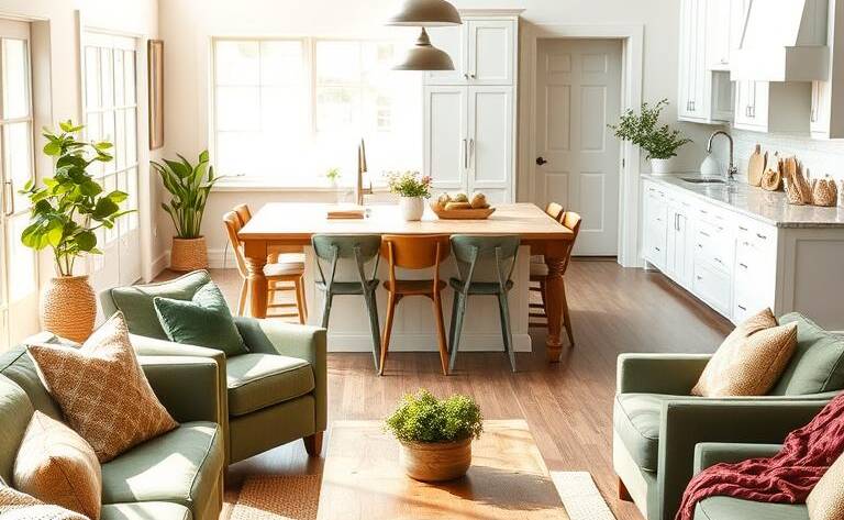 lovelyharbor.com says, "Make your space cozy with new ranch house decor ideas for 2025! Mix rustic textures, neutral colors, and modern style for a…