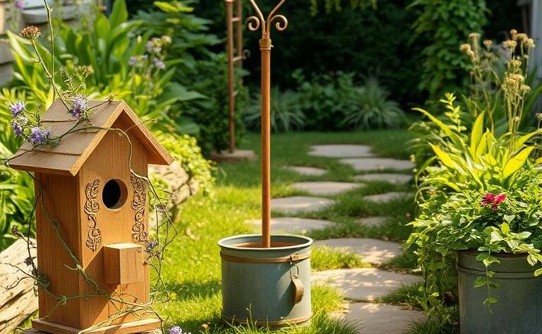 Using metal in gardens is more than just looks. It's about giving old things a new life. This idea fits with my wish to live…
