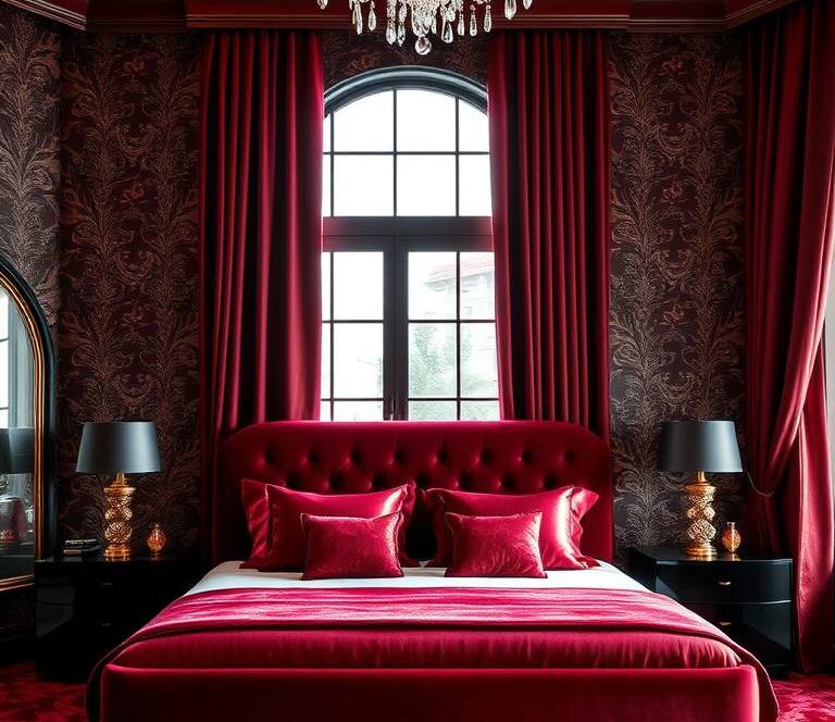 Rich colors make a bedroom look dramatic and fancy. They add depth and make the room feel cozy.
