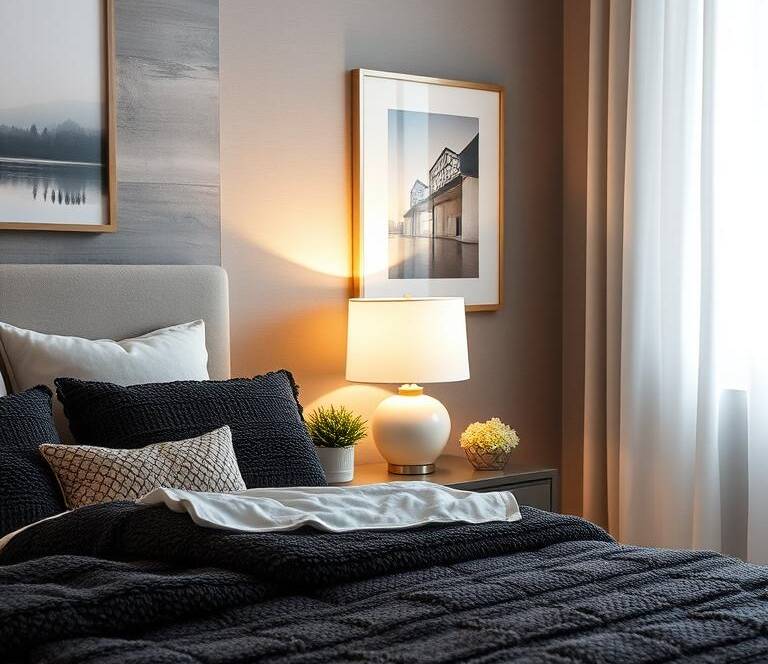In small bedrooms, the right lighting is key. It makes the room feel warm and welcoming. Good lighting can also make a room seem bigger and more comfy.