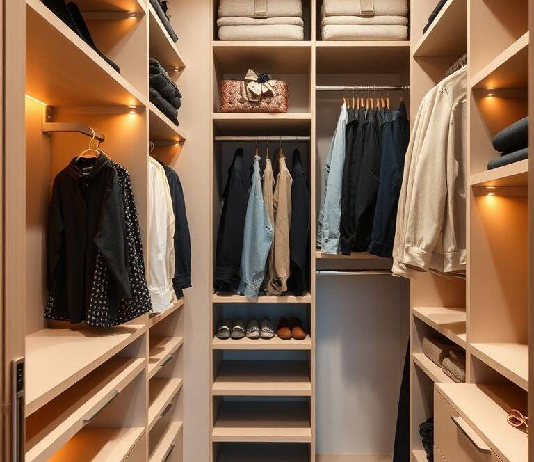 To keep a shabby chic bedroom calm, smart storage is key. The right storage makes the room look good and keeps it tidy.