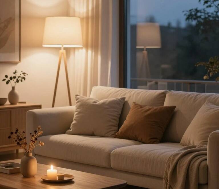 | Table Lamps with Warm Shades | Lamps with shades made from materials like linen or burlap. | Soft, warm, and relaxing. |