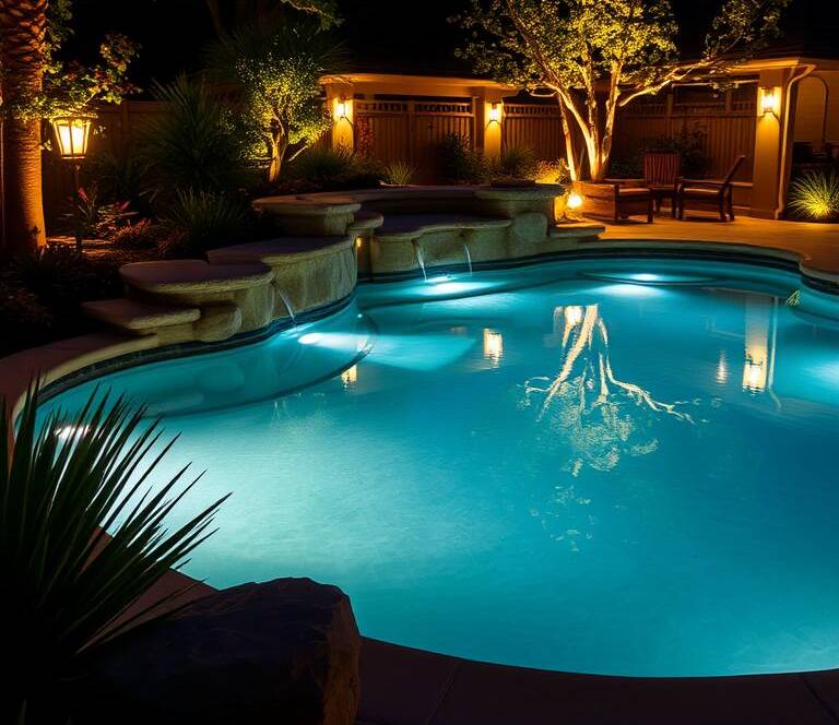 Good lighting can change how your plunge pool area feels. LED lights are a smart choice because they save energy. You can put lights underwater, on the deck, or in the landscape for a nice glow.