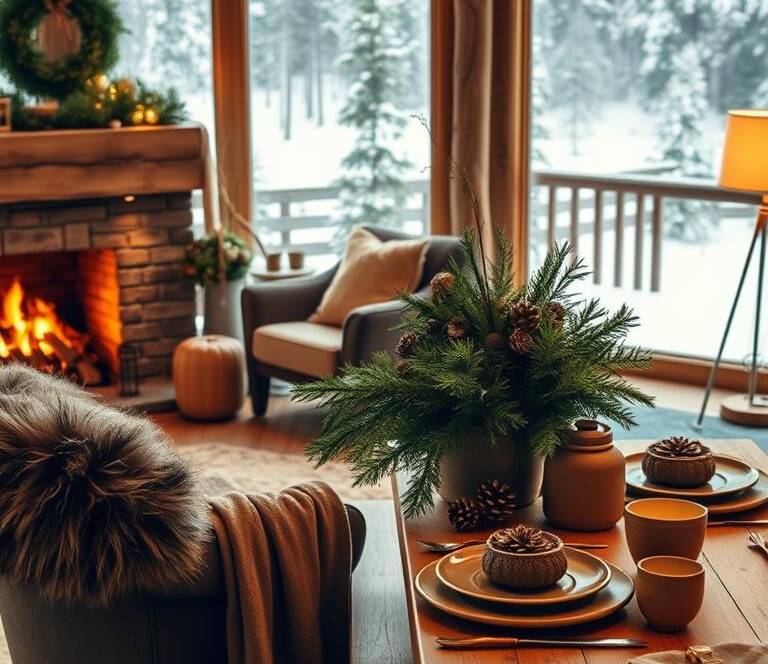 | Deep Greens and Earthy Browns | Pinecones, evergreen branches, natural wood | Cozy, rustic |