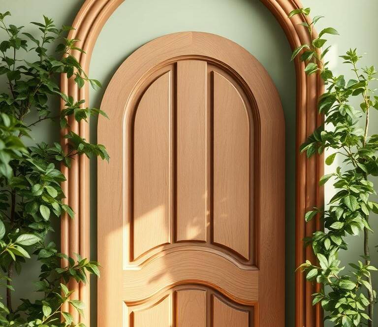 Wooden doors don’t have to be traditional. Custom designs can include arched tops or non-standard sizes. This fits unique entryways.